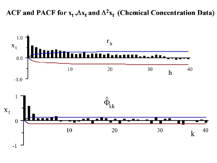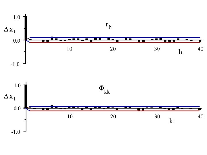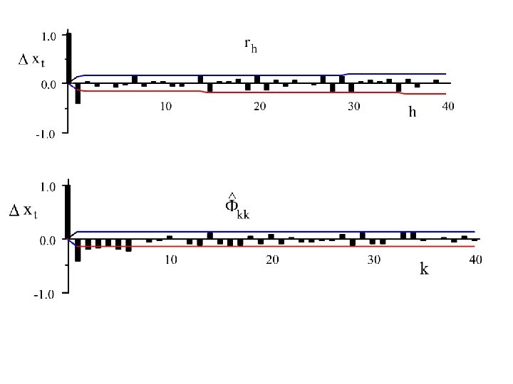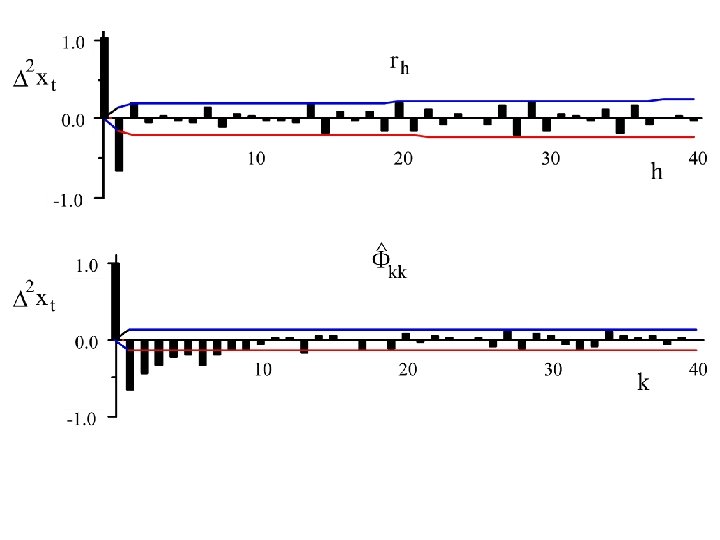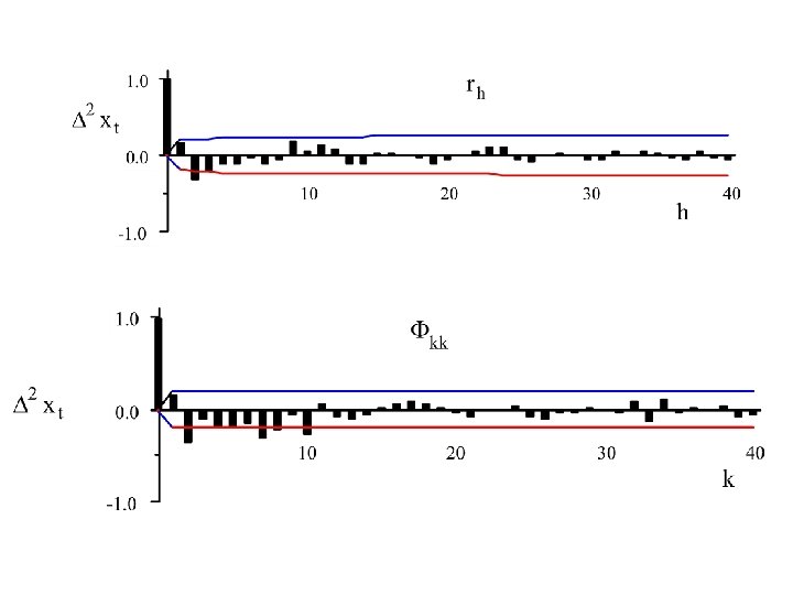 To identify an ARIMA(p, d, q) we use extensively the autocorrelation function {rh : - < h < } and the partial autocorrelation function, {Fkk: 0 k < }.