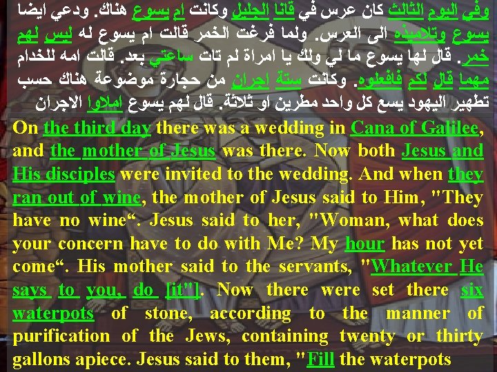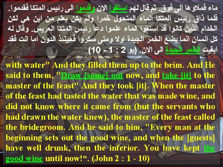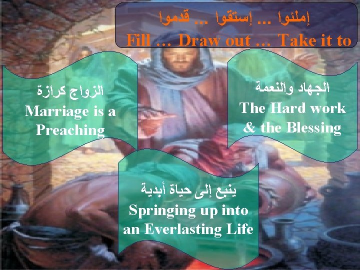 Model for Christian Marriage The Wedding in Cana Slides: 13 Download presentation Model for Christian Marriage ﻋﺮﺱ ﻗﺎﻧﺎ ﺍﻟﺠﻠﻴﻞ The Wedding in Cana of Galilee ﻗﺎﻧﺎ ﺍﻟﺠﻠﻴﻞ Cana of Galilee ﻗﺮﻳﺔ ﻓﻘﻴﺮﺓ A Poor Village ﻏﻴﺮ ﻣﺘﻮﻗﻊ Unexpected ﺃﻤﻦ ﺍﻟﺠﻠﻴﻞ ﻳﺨﺮﺝ ﺷىﺀ ﺻﺎﻟﺢ؟ Is it possible that out of Galilee comes something good?
