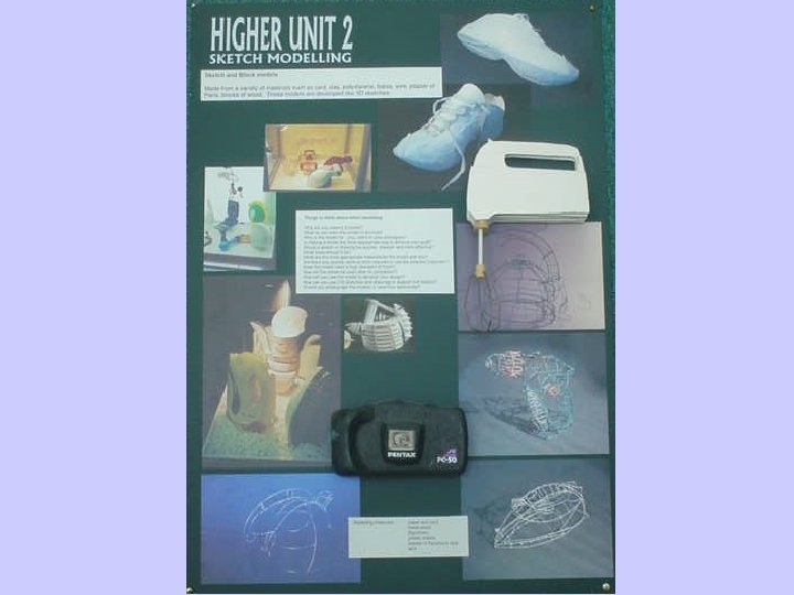 The use of model making in design Learning Intentions: • Learn about the different types of model making used in product design • Understand the benefits they offer to designers and model making’s importance in the design process • How the various types of models can be used to test different design issues Success Criteria: • You can name all 8 different types of model • You know where in the design process these models would be used • You can state which type of model is suitable for testing the various different design issues giving reasons for your answer • You can describe the benefits model making offers designers