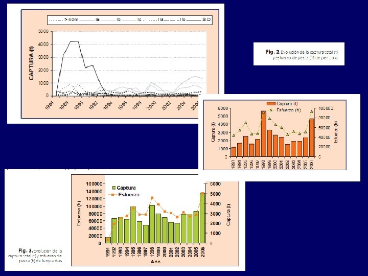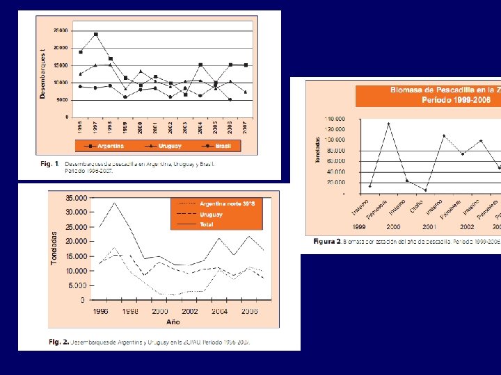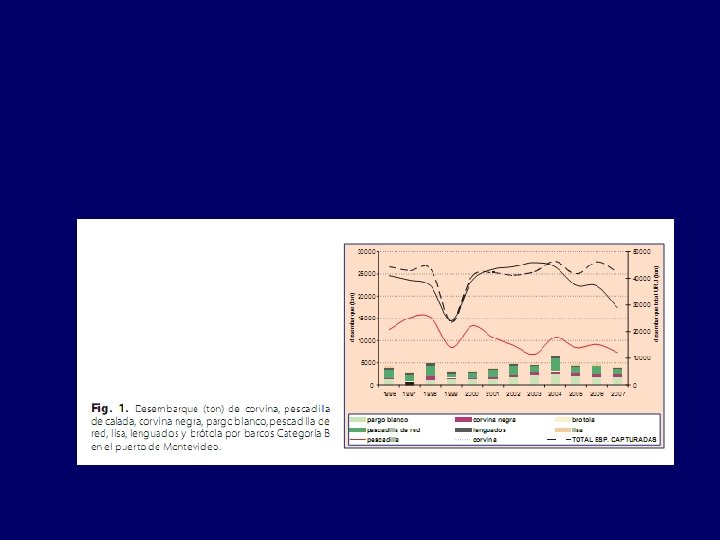 Desembarques (ton) Tasa de disminución 0. 41/década Evolución de las capturas y del nivel trófico medio de las capturas en el ECAU con datos de la CTMFM, 2010. Milessi & Jaureguizar, 2013.