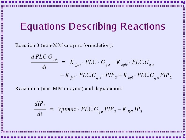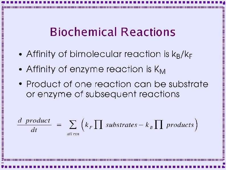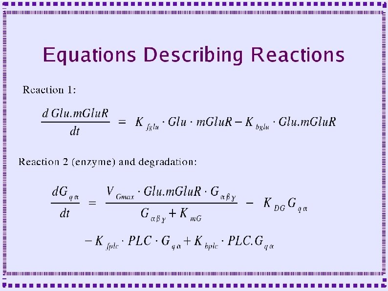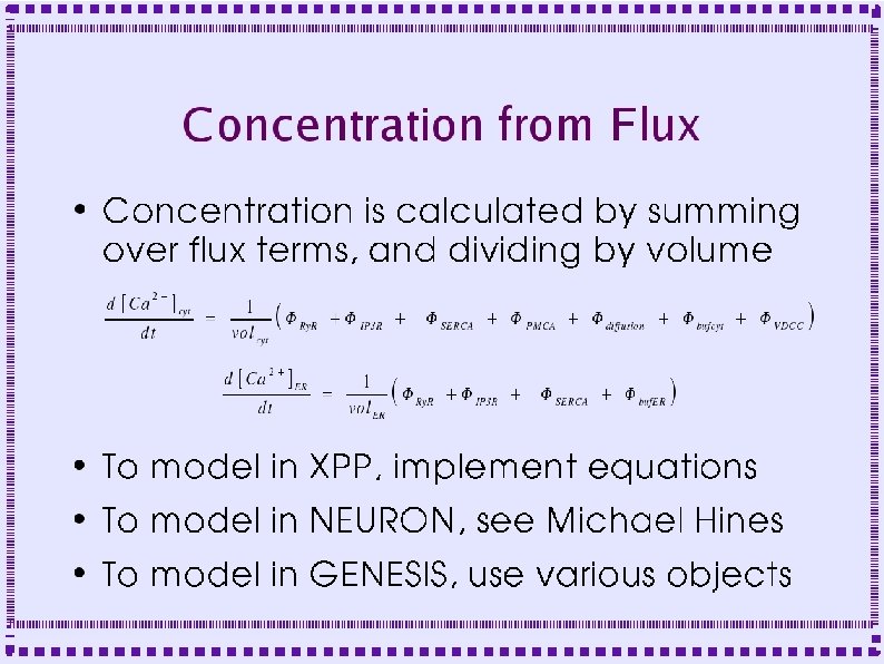Importance of Biochemical Reactions ● ● ● Some mechanisms of calcium dynamics are modeled as biochemical reactions Second messengers, . e. g Dopamine, modulate channel behavior Second messenger pathways are modeled as biochemical reactions