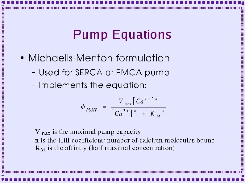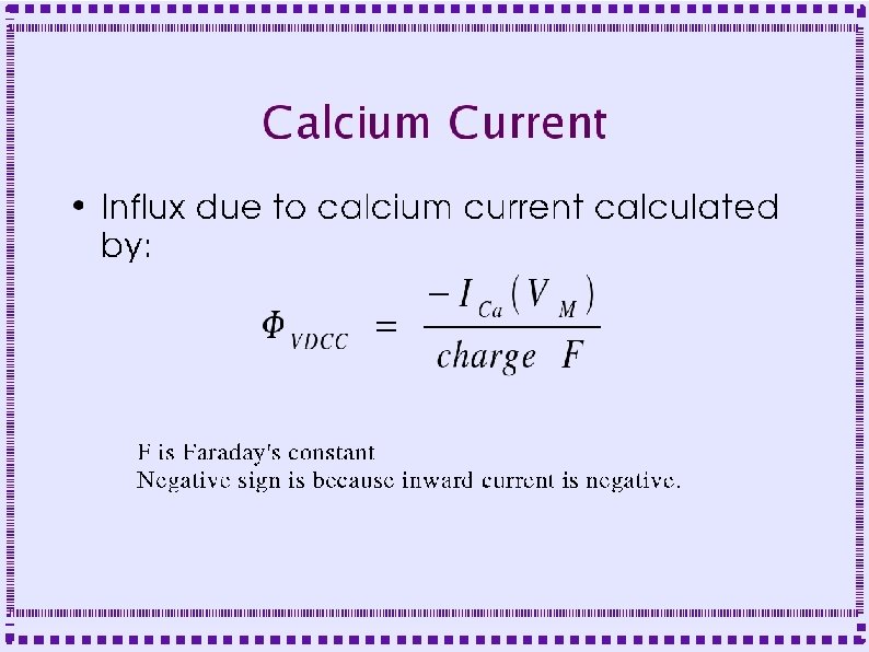 Control of Calcium Dynamics ● Calcium Current ● Pumps – Smooth Endoplasmic Calcium ATPase (SERCA) – Plasma Membrane Calcium ATPase (PMCA) – Sodium-Calcium exchanger