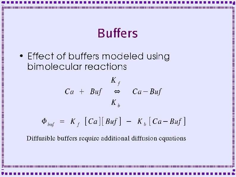 Control of Calcium Dynamics ● Release from Intracellular Stores – IP 3 Receptor Channel (IP 3 R) – Ryanodine Receptor Channel (Ry. R) ● Buffers ● Diffusion