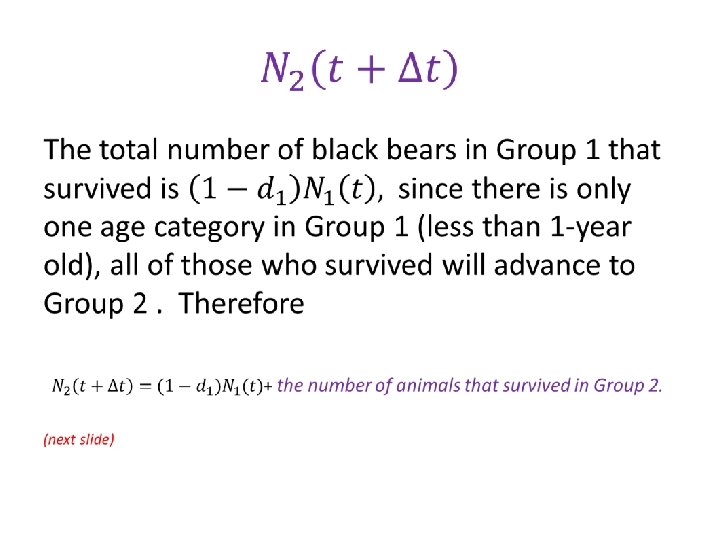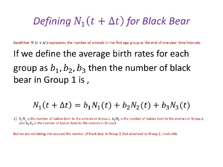 Species 1: Black Bear There are three age groups in the population of black bear assuming that no black bear survive past 18 years. • Group 1: ages (0, 1) • Group 2: ages [1, 4) • Group 3: ages [4, 18) We assume they do not survive past age 18