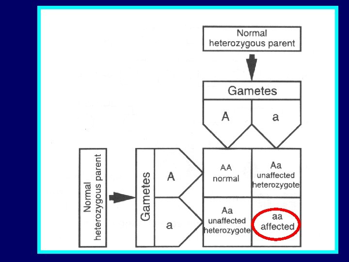 EREDITA’ AUTOSOMICA RECESSIVA Caratteristiche Sono necessarie due copie dell’allele mutato (aa) per causare la malattia l In un incrocio tra due portatori vi è il 25% di rischio di avere figli affetti Aa a. A l Maschi e femmine sono ugualmente affetti l AA Aa a. A aa