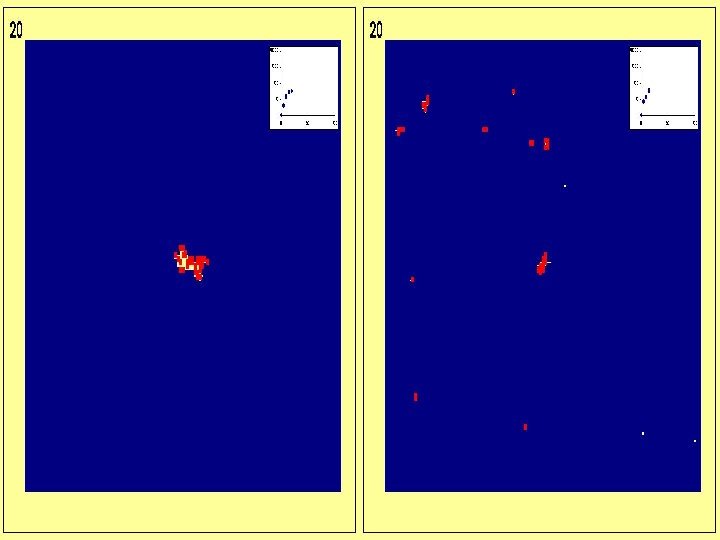 Spatial Epidemiology of HIV Doubling time = 1 year Life expectancy = 10 years Number of partners = 4 Proportion of random partners chosen at random = 0 (left hand set) or 10% (right hand set) in the following slides. Note that in this model migrants have exactly the same sexual behaviour and individual risk as non-migrants.