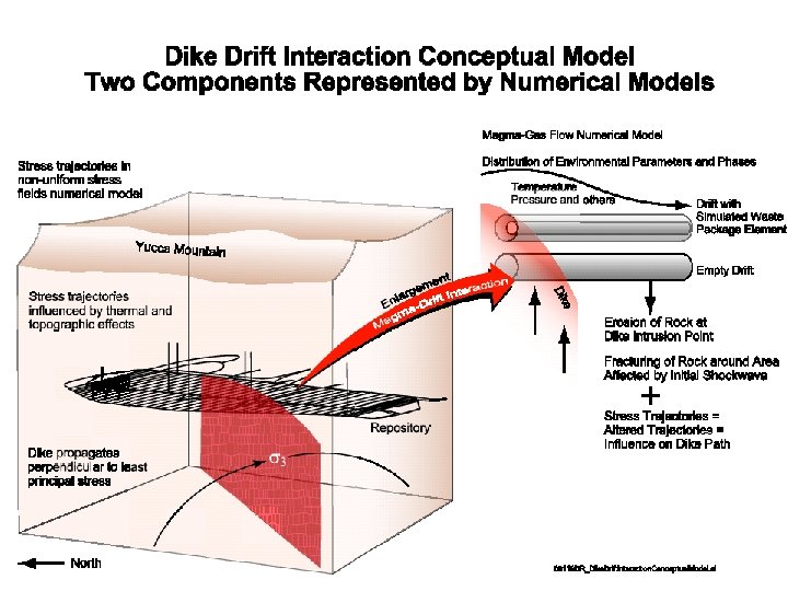 Context of Yucca Mountain Potential Igneous Events – Unlikely (10 -8 per year) – Intrusive/extrusive event similar to Lathrop wells • alkali basalt • 1 -4% (wt) H 2 O • ~0. 1 km 3 – Dike intersects drifts, damages waste packages • gas corrosion • heat effects on integrity • Impact, drag – May erupt to surface • fissure, conduit, or dogleg