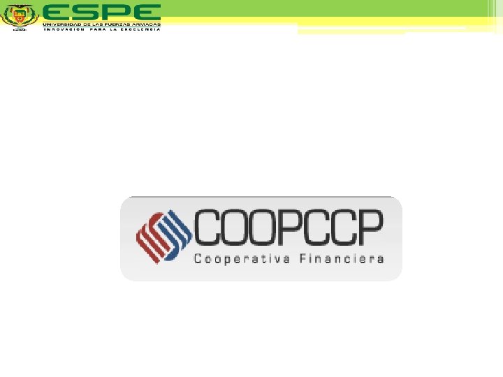 Reseña Histórica de la Cooperativa de Ahorro y Crédito Construcción, Comercio y Producción Ltda. 1988 2003 2013 • La institución fue puesta en funcionamiento mediante Acuerdo Ministerial 1841 del 28 de Julio de 1988 por parte del Ministerio de Bienestar Social. • Pasa al Control de la Superintendencia de Bancos y Seguros. • En la actualidad la COOPCCP pasa al control de la SEPS. • Están ubicados en las 4 regiones del Ecuador, cuentan con 15 agencias a nivel nacional.
