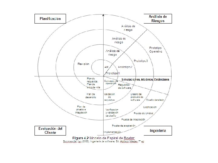 El modelo espiral propuesto originalmente por Boehm en 1988, es un modelo de proceso de software evolutivo ha sido desarrollado para cubrir las mejores características tanto del ciclo de vida clásico, como de la creación de prototipos, añadiendo al mismo tiempo un nuevo elemento: el análisis de riesgo