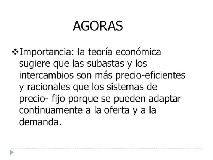 Agora Tema principal: Precio Dinámico Propuesta de Valor: Convertir el bien en el precio deseado Rol del cliente: Juega en el mercado Foco del conocimiento: Inteligencia de mercado Proceso clave: Descubrir precios Ejemplo: Priceline