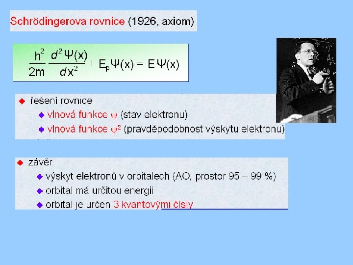 Magnetické kvantové číslo m - souvisí s kvantováním magnetického momentu elektronu - nabývá hodnot -l …… 0, ……+l celá čísla - udává prostorovou orientaci orbitalu Spinové kvantové číslo s (ms) -souvisí s vlastním momentem hybnosti elektronu -nabývá hodnot +1/2 - 1/2