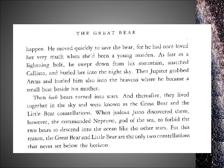 The Great Bear The Story of Callisto and Arcus T-P-S: Make a prediction of how The Great Bear constellation got it’s name.