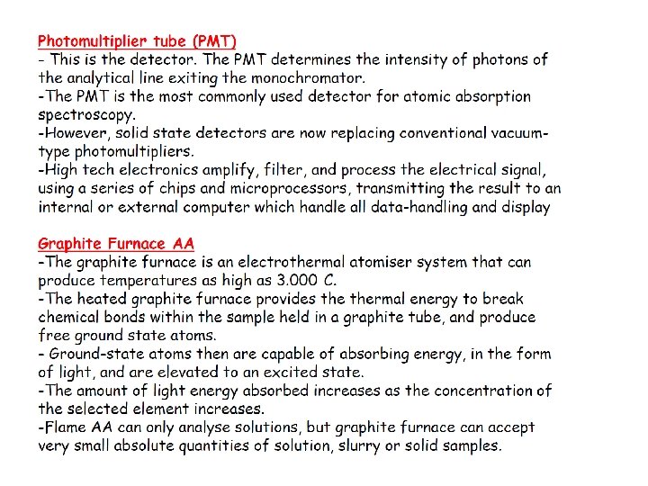 Sensitivity Atomic spectroscopy is very sensitive for most elements. Concentrations at the ppm level may be routinely determined using flame atomisation. Using electrothermal atomisation, concentrations at the ppb may be determined. 1 ppm = 10 -6 g/g or 1 g/g The density of dilute aqueous solutions is approximately 1. 00 so that: 1 g/g of aqueous solution = 1 g/ml = 1 ppm Fe = 1 x 10 -6 g Fe/ml = 1. 79 x 10 -5 mol dm-3