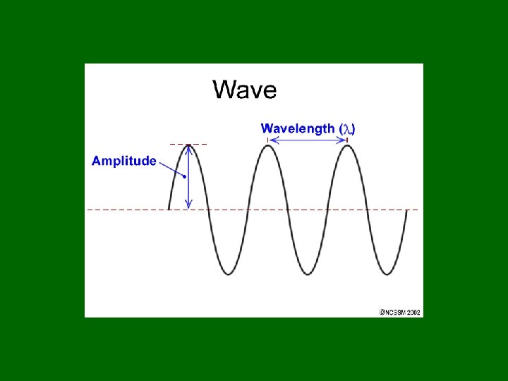 2 kinds of waves Traveling wave • Wave is not confined to a given space • Travels from one location to another • Interrupted by a boundary or another wave Standing wave • Confined to a given space. (Ends pinned. ) • Interference between incident & reflected waves. • At certain frequencies, certain points seem to be standing still. • Other points, displacement changes in a regular way.