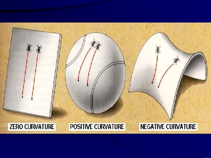 La Densidad está relacionado con la geometría en el modelo estándar más simple (constante cosmológica = 0): Plano ρ = ρcrit Curvatura negativa Curvatura positiva ρ > ρcrit ρ < ρcrit