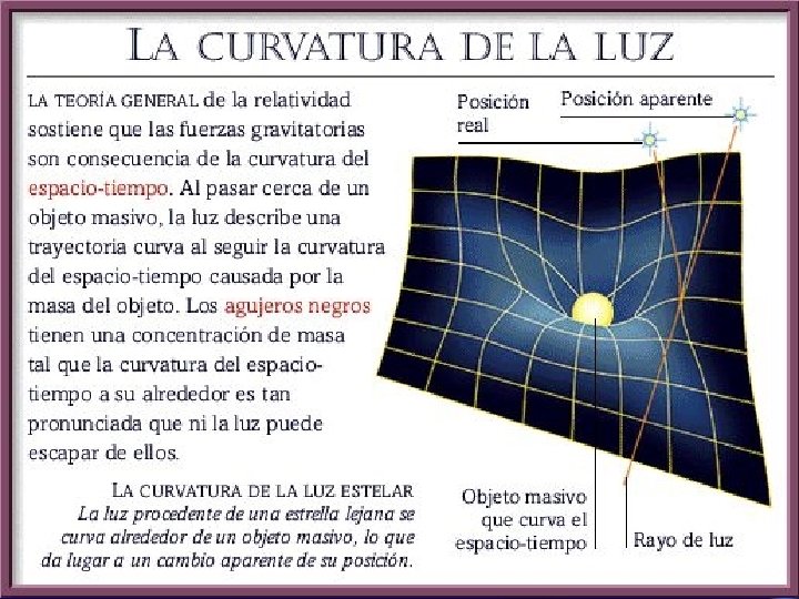 LA RELATIVIDAD GENERAL • En 1914, Einstein publica esta teoría que generaliza a marcos de referencia que pueden estar acelerados. • Esta teoría es muy importante en Astronomía, puesto que permite entender la evolución misma del Universo…