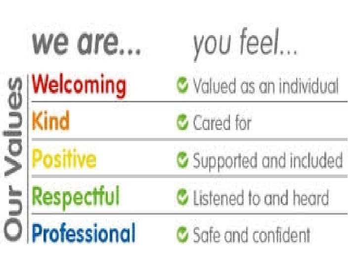 Behaviours and values • Openness and Honesty (It is a shared responsibility to ensure that all members feel safe to express their opinions • Participation and Equality (Everyone’s contribution is to be recognised and valued • Open to Challenge (Any group member may be challenged in order for the group to learn and change • Fairness: The group must ensure that everyone involved has an equal voice • • Accountability: All members share responsibility for • decisions taken by the group