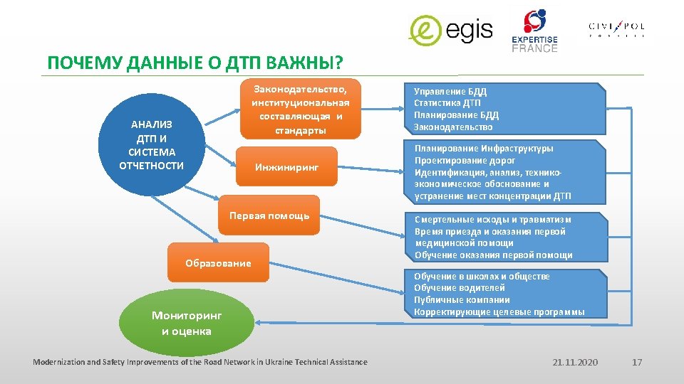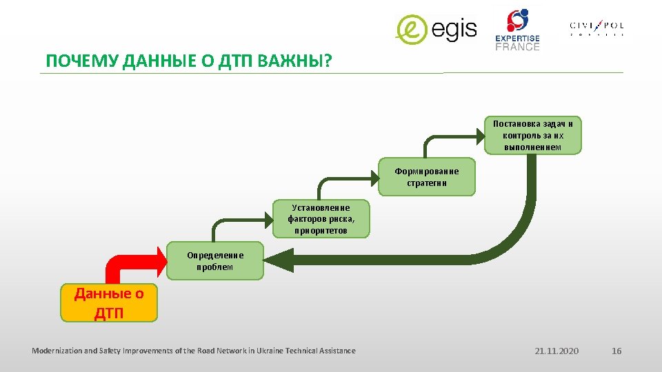 Modernization and Safety Improvements of the Road Network in Ukraine Technical Assistance IMPORTANCE OF ROAD CRASH DATABASE ANALYSIS FOR CONTROL OF ROAD SAFETY ВАЖНОСТЬ АНАЛИЗА ДТП ДЛЯ КОНТРОЛЯ БЕЗОПАСНОСТИ ДОРОЖНОГО ДВИЖЕНИЯ Road Safety Week, 17/11/2016, Kiev. Ukraine
