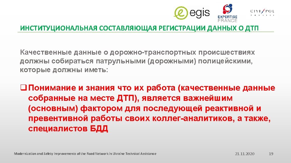 ВОПРОСЫ НА КОТОРЫЕ ДОЛЖНА ОТВЕТИТЬ БАЗА ДАННЫХ О ДТП Modernization and Safety Improvements of the Road Network in Ukraine Technical Assistance 21. 11. 2020 18