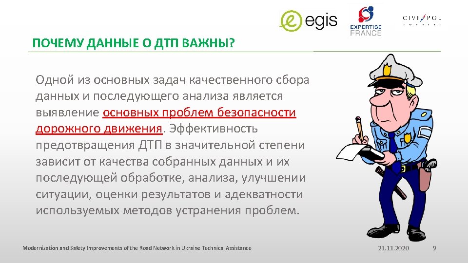 КОЛИЧЕСТВО И КАЧЕСТВО ВАЖНО ДЛЯ СОХРАНЕНИЯ ДРУГИХ ЖИЗНЕЙ Modernization and Safety Improvements of the Road Network in Ukraine Technical Assistance 21. 11. 2020 8