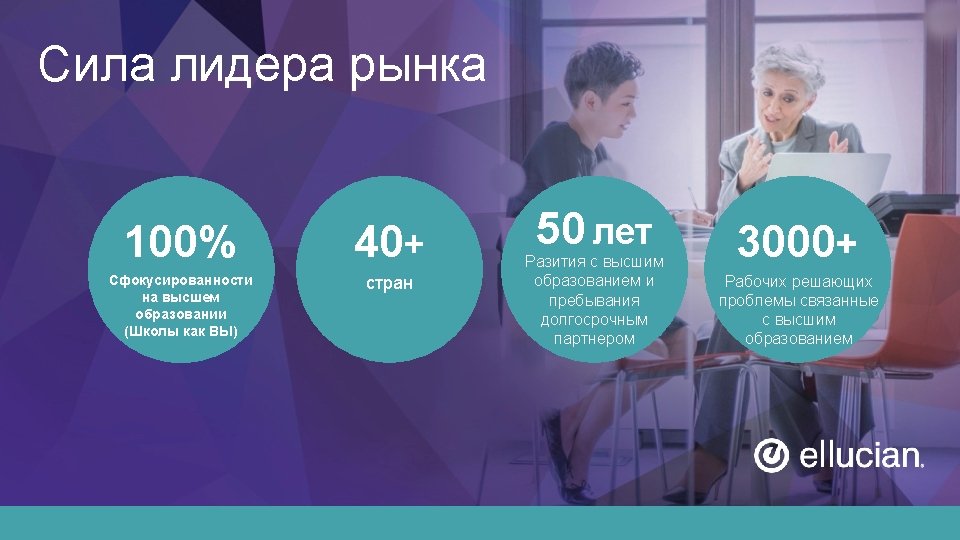 The power of a market leader 100% 40+ 50 years 3000+ focused on higher education countries of evolving with higher ed and being a long-term partner employees dedicated to solving challenges for higher ed (Schools like YOU)