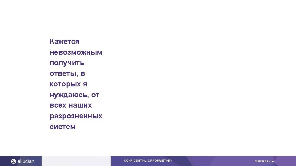It seems impossible to get the answers I need from all our disparate systems CONFIDENTIAL & PROPRIETARY © 2018 Ellucian