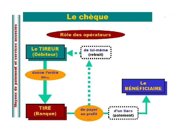 CHEQUE BANCAIRE Avantages • Permet de garder une trace du paiement • Paiement immédiat pour le vendeur inconvénients • Possible refus par le vendeur • Risque d’erreur dans la rédaction • Cheque sans provision • Falsification possible • Perte • Opposition