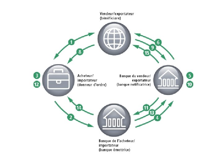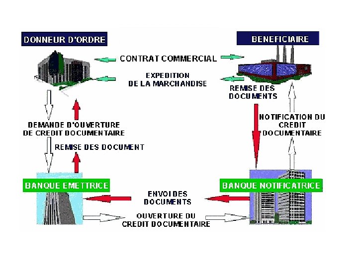 • CREDOC ØPARTICIPANTS: BENEFICIAIRE EXPORTATEUR ACCEPTATION DU CONTRAT 1 DONNEUR D ’ORDRE IMPORTATEUR DEMANDE D’OUVERTURE DU CREDOC 4 2 NOTIFICATION BANQUE NOTIFICATRICE 3 BANQUE EMETTRICE EMISSION ET ENVOI DU CREDIT DOCUMENTAIRE