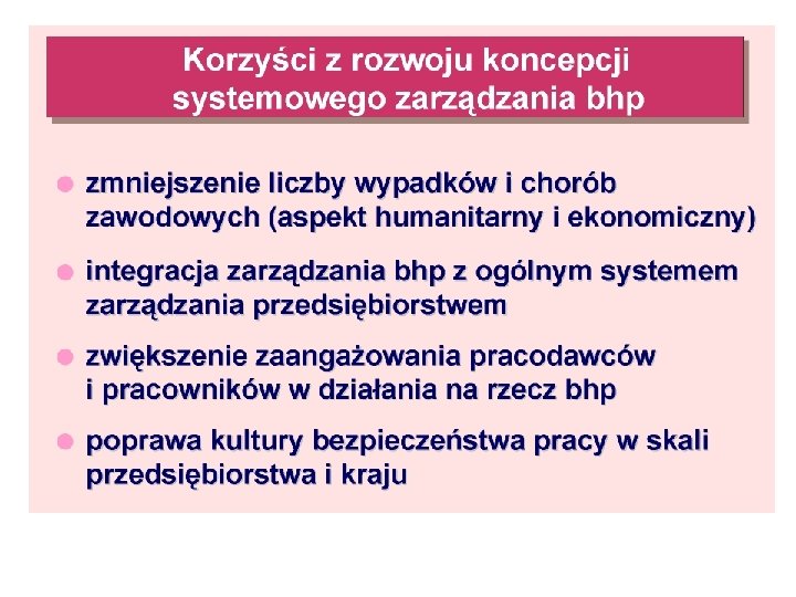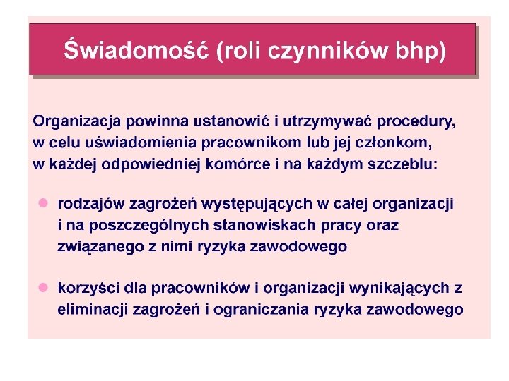 Dobrowolny system zarządzania BHP (SZBHP) jako źródło informacji w obszarze BHP DO CHWILI OBECNEJ W MIĘDZYNARODOWEJ ORGANIZACJI NORMALIZACYJNEJ NIE OPRACOWANO MIĘDZYNARODOWEJ NORMY DOTYCZĄCEJ SYSTEMÓW ZARZĄDZANIA BHP.