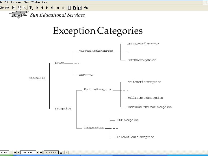 Contoh Exception 1 public class Hello. World { 2 public static void main (String[] args) { 3 int i = 0; 4 5 String greetings [] = { 6 "Hello world!", 7 "No, I mean it!", 8 "HELLO WORLD!!" 9 }; 10 11 while (i < 4) { 12 System. out. println (greetings[i]); 13 i++; 14 } 15 } 16 }
