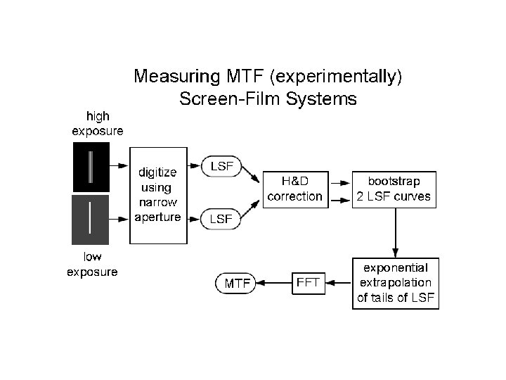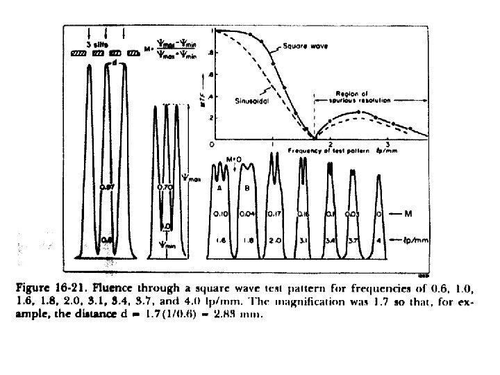 MTF measurement • Modulation (Contrast) of object is obtained for a point source as M’ • • • Where: To = density changes Tav = Average density on film To+ = Maximum density To- = Minimum density