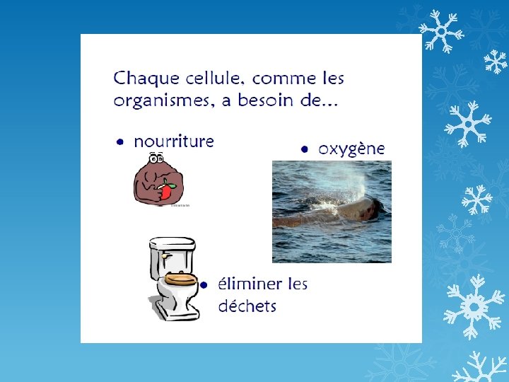 Thème 6: Les systèmes organiques des êtres humains Chaque cellule dans nos corps a besoin de nourriture et d’oxygène pour avoir de l’énergie. Pour que la cellule a les deux éléments nécessaires, trois systèmes organiques doivent travailler ensemble: 1. Le système digestif 2. Le système respiratoire 3. Le système circulaire