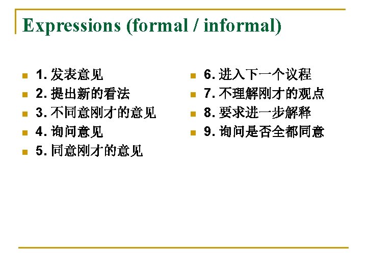 Giving opinions n n n I think… I’m in favor of… I really think we need a report. Shouldn’t we have more information? We feel… is the best way to… I’m just not happy about this proposal.