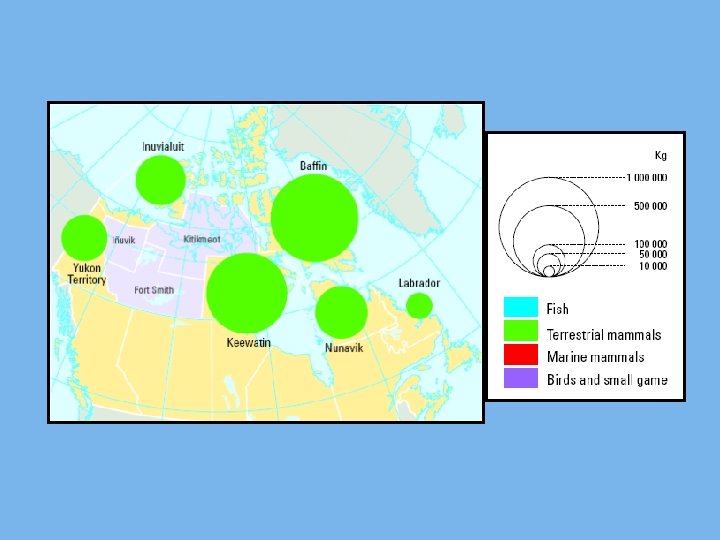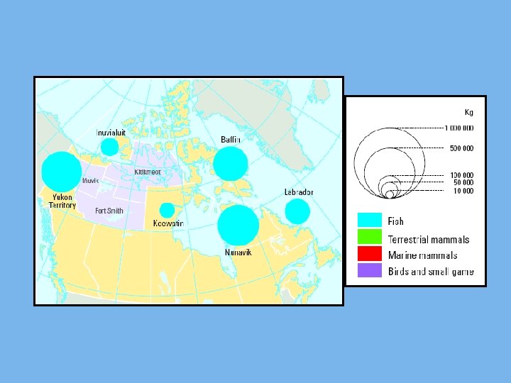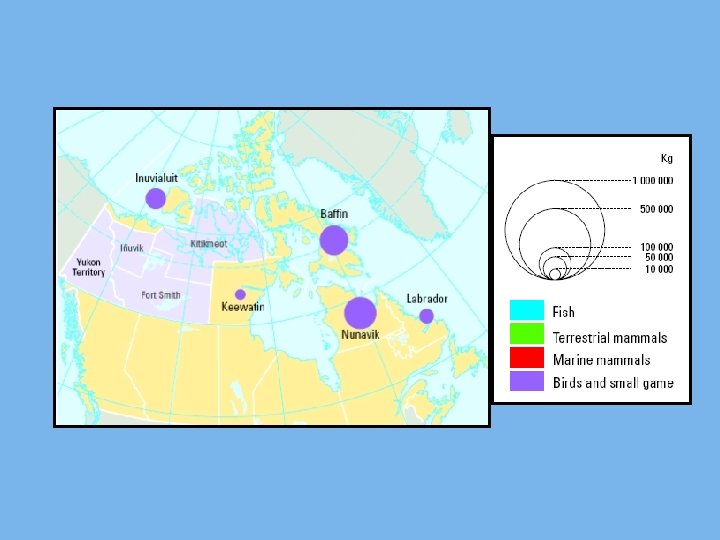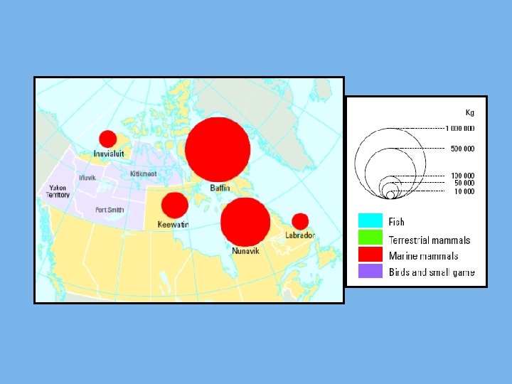Subsistence Food Provisioning • Nutrition for indigenous people in the Arctic is changing rapidly; from 100% to <50% “country food”. • Presence of larger communities, presence of “Coop” or “Bay” stores, and an increasing cash economy contribute to changes in feeding habits. • Lastly, hunting activities are costly when modern technologies are used the “pay off” of traditional food provisioning is decreasing.