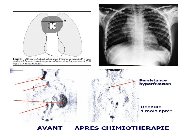 C- Bilan d’extension : v Clinique : a- Palpation de toutes les aires ganglionnaires b- Recher une SPMG et une HPMG c- Examen ORL : à la recherche de l’atteinte de l’anneau de Waldeyer et du cavum. v Radiologie: a- Radiographie thoracique de face: à la recherche des ADP médiastinales, calculer le rapport masse médiastinale/thorax (IMT), recher une atteinte pulmonaire. b- Scanner thoracique et abdominal: à la recherche des ADP profondes et les atteintes viscérales. c- PET-SCANN: par FDG permet d’apprecier l’extension de la maladie v biologie : Phosphatase alcaline (PA) : un taux > 2 x la normale est en faveur d’une atteinte hépatique mais c’est la PBF qui confirme le diagnostic. v BOM : à la recherche d’une atteinte de la moelle osseuse
