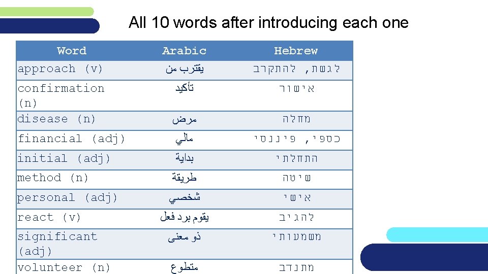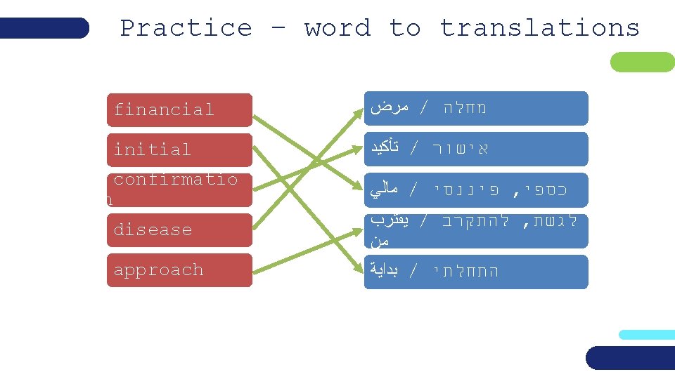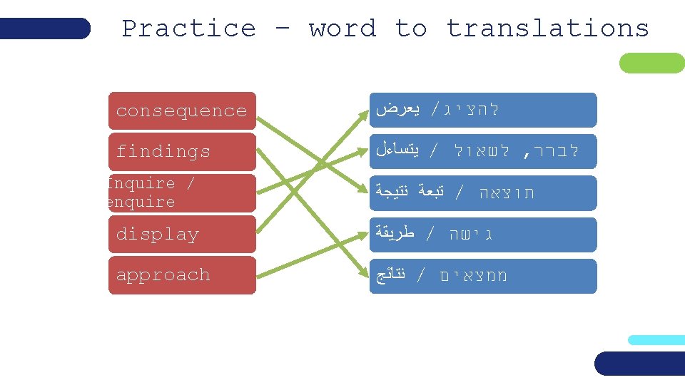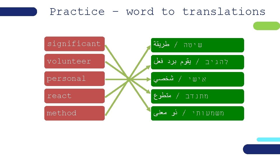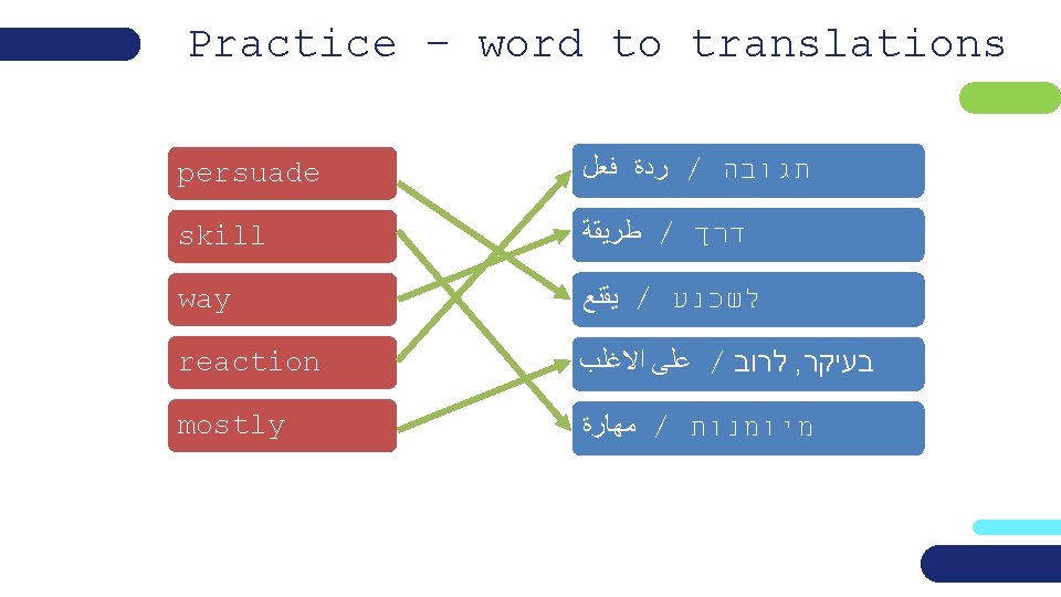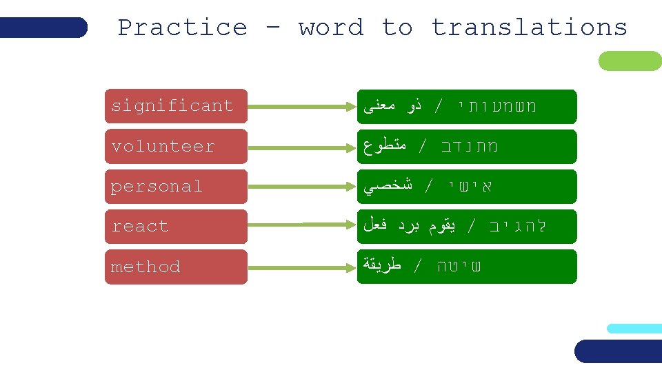 Introduction Translation: Hebrew / Arabic definition example sentence/s EXTRAS