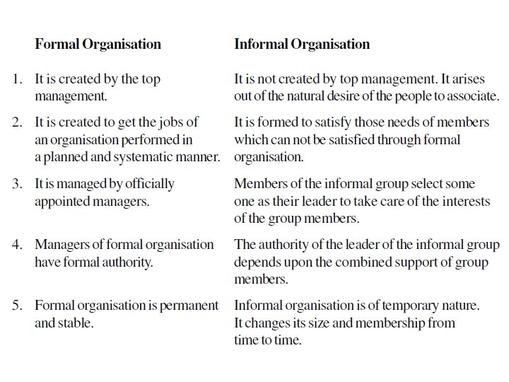 Importance • Organising is essential because it facilitates administration as well as operation of enterprise. • By grouping work and people properly, production increases, overload of work is checked, wastage is reduced, duplication of work is restricted and effective delegation becomes possible. • Secondly, organising facilitates growth and diversification of activities through clear division of work. It helps in developing a proper organisation structure and the extent and nature of decentralisation can be determined. • In addition to the above, organising also provides for the optimum use of technical and human resources. • It also encourages creativity and enhances interaction among different levels of management which leads to unification of efforts of all.