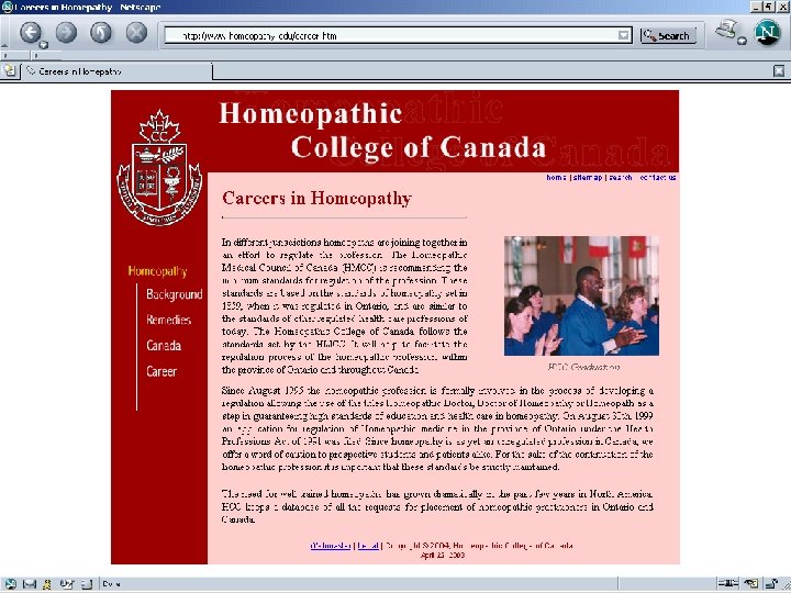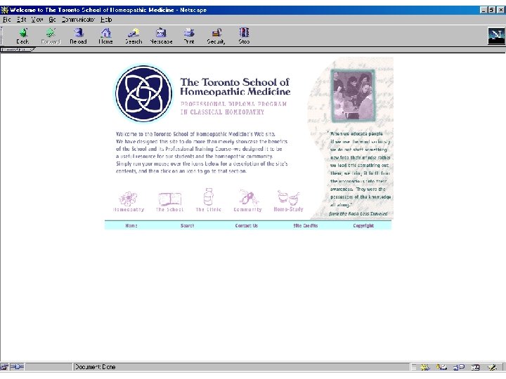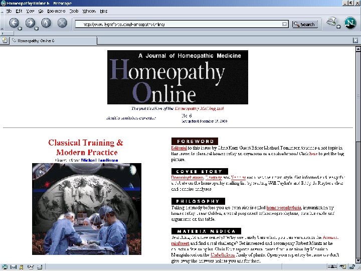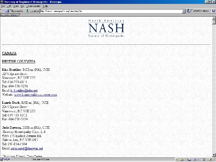 Training ? • There are H-schools or included in ND training and cert courses • Registered homeopath: RSHom (NA) where NA is geogr area in which licensing occurred ( N America ) • In Canada, DSHom. Med, which represents the Diploma of The Toronto School Homeopathic Medicine • All Canadian homeopathic schools and colleges grant diploma status