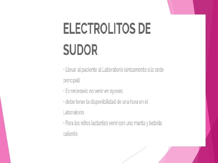 PREPARACION DEL PACIENTE PARA LA TOMA DE LA MUESTRA AYUNO PREVIO ANTES DE LA EXTRACCION DE 10 -12 HORAS. NO CONSUMO DE ALCOHOL NO REALIZAR EJERCICIO PREGUNTAR AL PACIENTE SI TOMA ALGUN MEDICAMENTO SI TIENE ALGUN DIAGNOSTICO YA HECHO. NO FUMAR