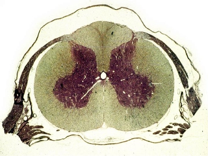 Ø la SB se trouve à la partie postérieure et ventro- latérale de la moelle C’est à son niveau que se cheminent les fibres axonales sensitives ascendantes et motrices descendantes