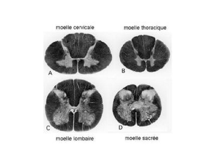 La moelle épinière va augmenter de volume de bas en haut, car les fibres qu’elle renferme y sont de plus en plus nombreuses