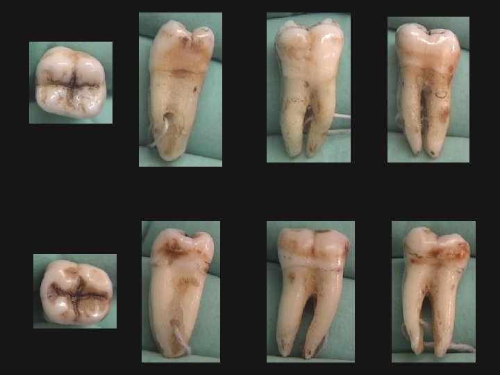 Mandibular second molar… • • • Buccal and lingual dimensions more equal Mesial and distal dimensions more equal No pronounced marginal grooves No root concavities Roots more distally inclined