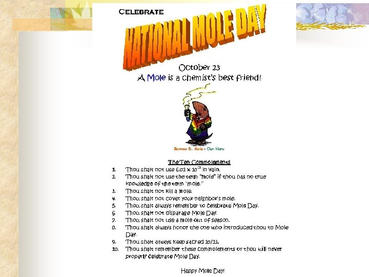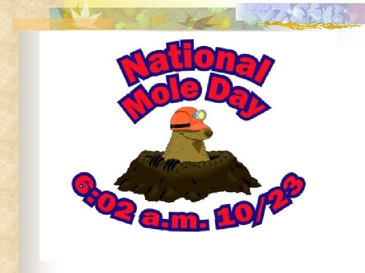 n How many atoms are in 0. 10 mol of H 2 SO 4? n 0. 10 mol n Note: the number of atoms in a molecule is a counting number, not a measurement! 6. 02 x 1023 molec 1 mol = 4. 2 x 1023 atoms 7 atoms 1 molec