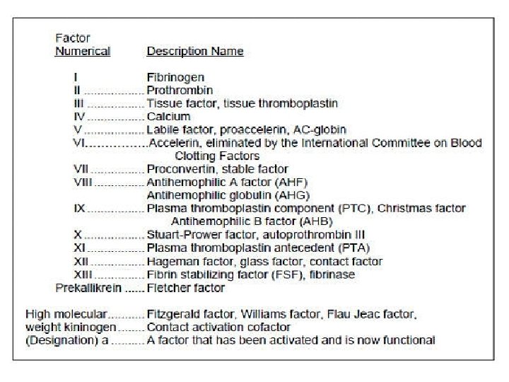 Diagnostic Tests A- Activated partial thromboplastin time (a. PTT): measures effectiveness of clotting factors (in seconds) (intrinsic pathway) It is only elevated in: 1 - Factor XI, IX, or VIII deficiency 2 - Factor XI, IX, or VIII specific factor inhibitor 3 - Heparin contamination 4 - Antiphospholipid antibodies B- Prothrombin time (PT) (extrinsic pathway) It is only elevated in: 1 - Factor VII deficiency 2 - Congenital (very rare) 3 - Acquired (Vit K deficiency, liver disease) 4 - Factor VII inhibitor 5 - Rarely in patients with modest decreases of factor V or X C- Measurement of the amount of each factor in the plasma and a. PTT test performed as routine diagnostic tests for bleeding disorders D- ELISA detects the presence of antibodies to clotting factor proteins.