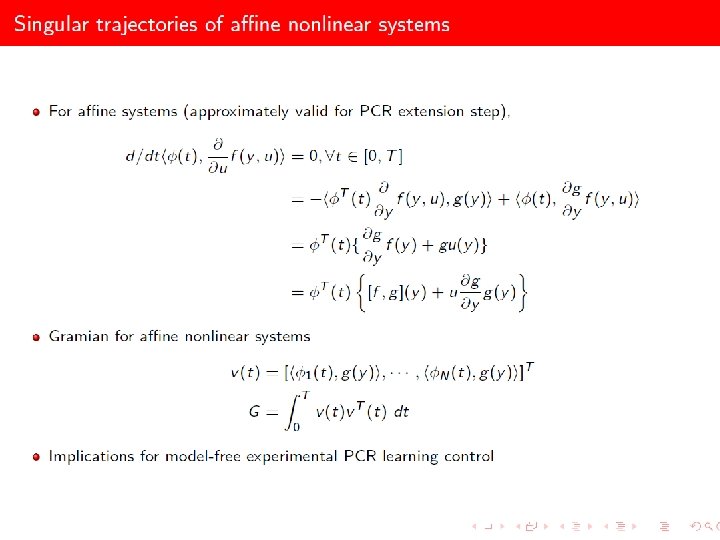 From standard to generalized PCR cycling Accessibility May mention reachable set here rather than above move / send to backup 6. Decide what to sho Specify controls in finite set May show affine extension state equations in u, f, g format Then transition to full OCT – for nonlinear problem, application of vector fields in arbitrary com PCR gradient, mentioning PMP and definition of phi(t) (can then indicate below that gradien Project flow w Gramian in terms of phi(t) – for comments on model-free learning control of