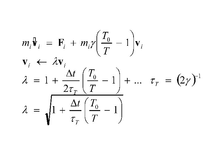 Berendsen thermostat t – coupling parameter Dt – time step Ek – kinetic energy Berendsen et al. , J. Chern. Phys. , 1984, 81(8) 3684 -3690 : velocities reset to maintain the desired temperature : microcanonical run