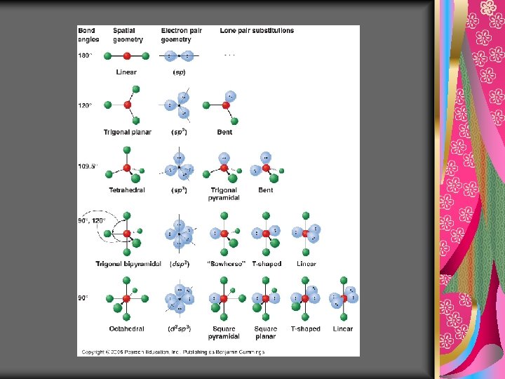 Ex: H 20 H– O –H since lone pair is more electronegative than the bonding pairs it tends to push the bonding pairs closer together, thereby decreasing the angle between them O H H v-shaped (less than 1090)
