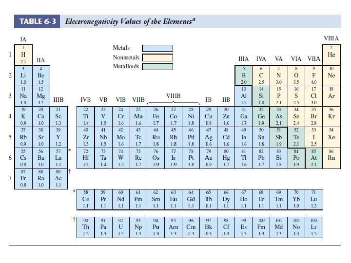 Difference in Electronegativity Δ E. N. Range Type of Bond 0 to 0. 5 Nonpolar Covalent 0. 5 to 1. 9 Polar Covalent 1. 9 or greater Ionic