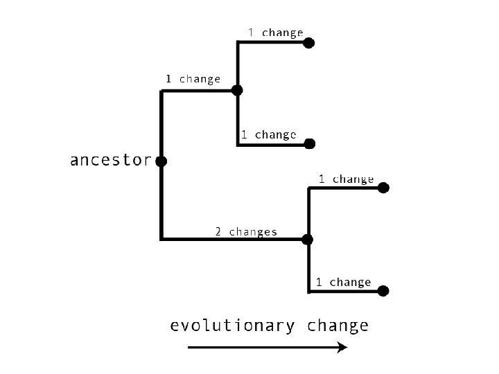 • Mutations happen when genetic material is copied • Changes accumulate independently along each branch (within each new infectee) • If one of these patients now infects two new victims, they inherit those changes