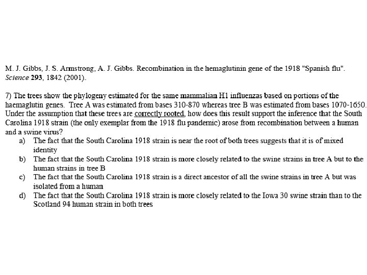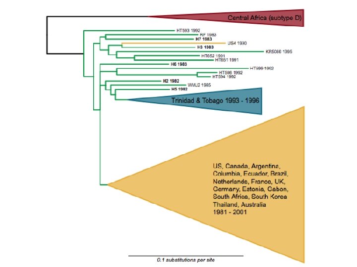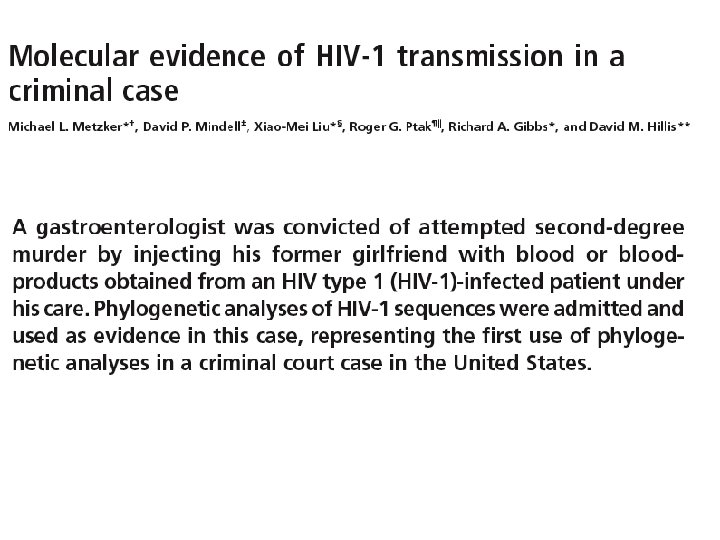 Phylogenetics interlude • Sequences recovered from the victim • Sequences recovered from the patient • Sequences also recovered from other HIV-positive individuals from the same city